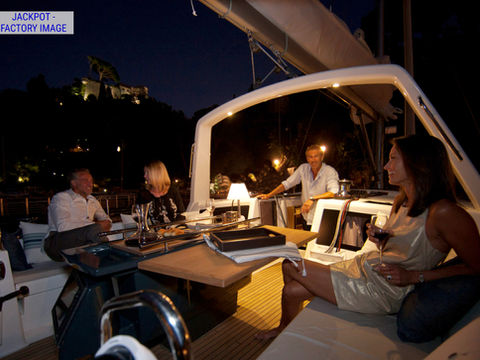 Meet your crew and board the luxurious, 50 ft (15.1 m) sailboat JACKPOT, equipped with an extensive swimming platform, ample cockpit and lounge areas, a freezer, drink fridges, a washroom, and air-conditioning.